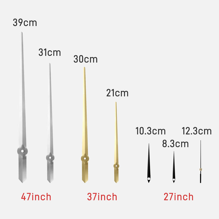 - Hour hand: 31cm, Minute hand: 39cm, Clock machine diameter: 12cm
