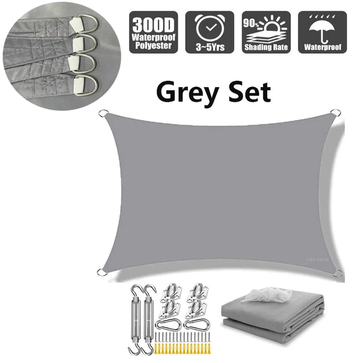 300D gray waterproof awning sail, anti uv awning, ultralight awning for pool garden, shade sail, camping awning