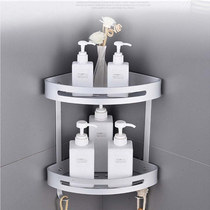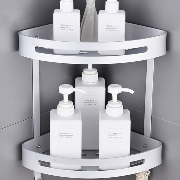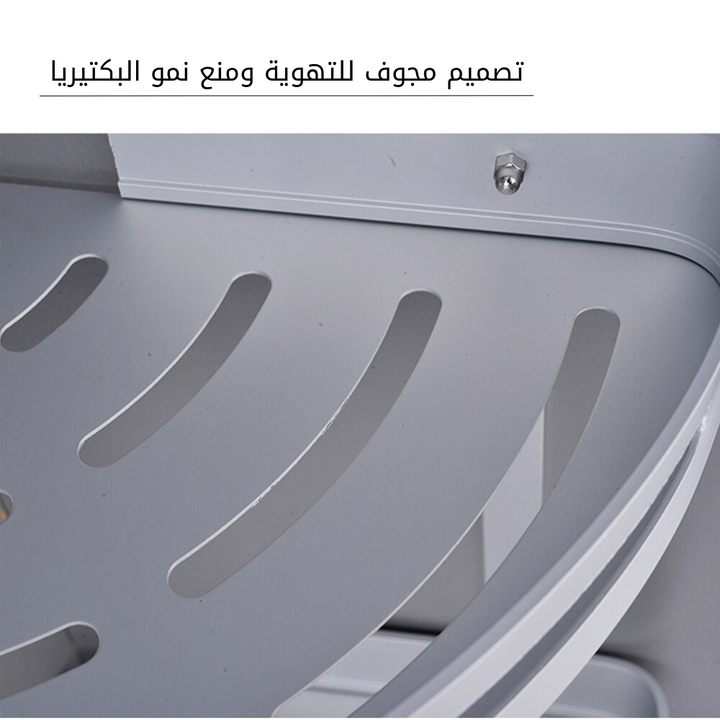 رف تخزين زاوية الحمام الذي يتميز بمساحته الواسعة والسميكة والمصنوع من الألومنيوم ،ويحتوي هذا الرف على طبقتين مزدوجة ويتم تركيبه بسهولة، يأتي الرف باللون الفضي مثلث الشكل ويتميز بمتانته وقوته، سهل التركيب، تصميم مجوف وتهوية لمنع نمو البكتيريا ،لا يترك أي آثار على الجدار بعد إزالته، ويعد خيارًا مثاليًا لتخزين الأدوات والمنتجات الحمامية في المكان المناسب وبأسلوب عصري وانيق.