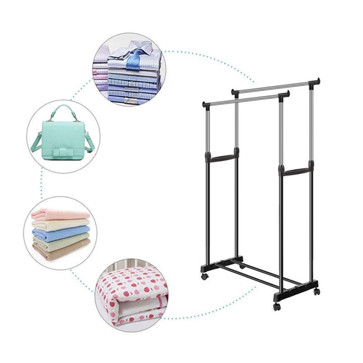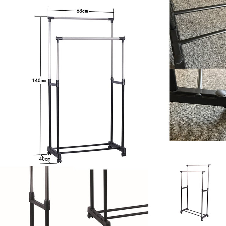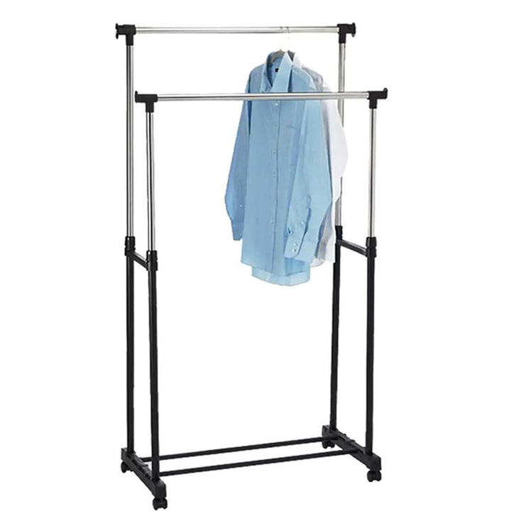 Organize your clothes effortlessly with this clothes hanger, the perfect solution to keep your garments neat and tidy, while also doubling as a drying rack. Designed with practicality in mind, this clothes hanger adds a stylish touch to your living space and features a double shelf for added storage.