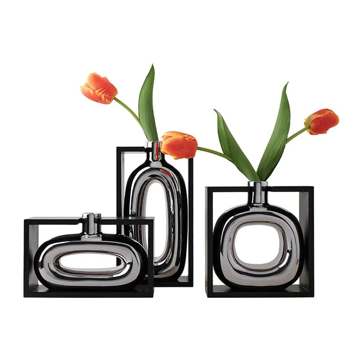 Silver Ceramic Vase Hollow Cutout Frame Hydroponic Flower Arrangement Flower Vase Terrarium Home Decoration Accessories