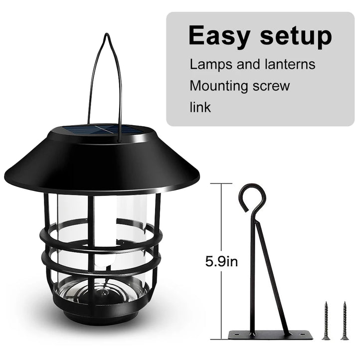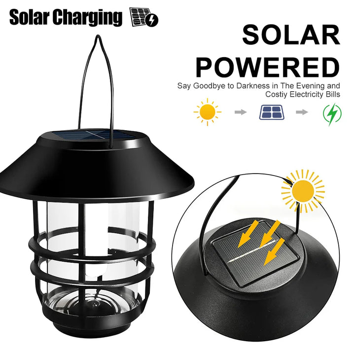 Solar Flame Hanging Lantern with Flickering Flames for Outdoor Decor
